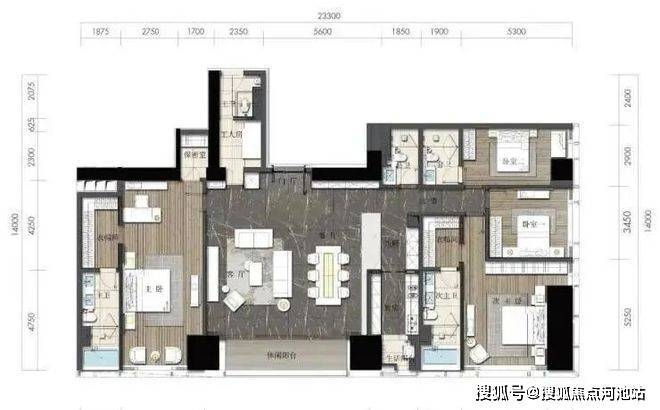 约164㎡2房2厅2卫(独立入户玄关,动静分离,约33㎡豪华主卧,承载品质生活)