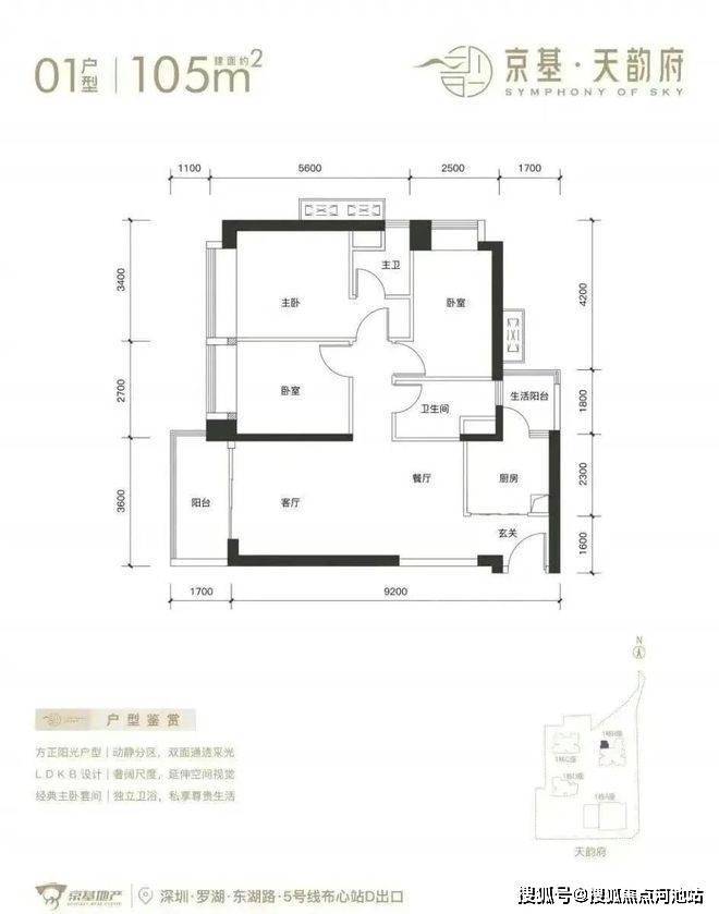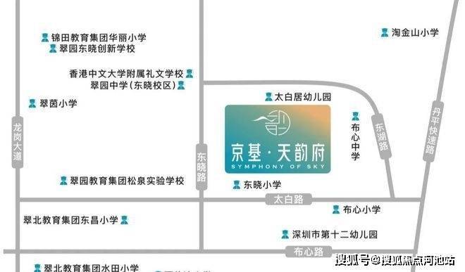 先抛开产品部分,京基天韵府的素质绝对不差,其位于罗湖区东湖街道仁心路与围岭中路交汇处西北侧,属于罗湖的老牌居住区——布心片区,周边配套十分丰富,距离地铁5号线布心站仅约200米,步行4分钟,实打实的地铁物业,出行非常方便。