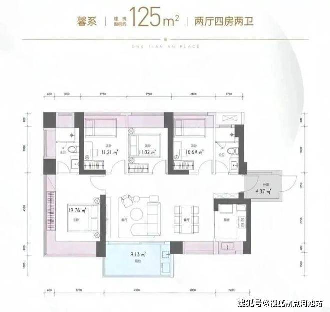 这次天安云谷13栋推出的户型最大的亮点是面积约98㎡把得房率做到3+1房2卫。