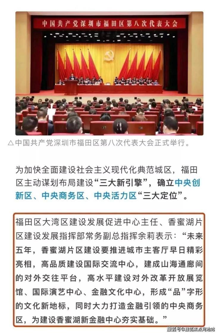 今年9月福田党代会中,重点提到「未来五年香蜜湖片区建设要推进城市主客厅早日精彩亮相,打造“品”字形的文化新地标和金融引领的中央商务区,为建设香蜜湖新金融中心夯实基础。」