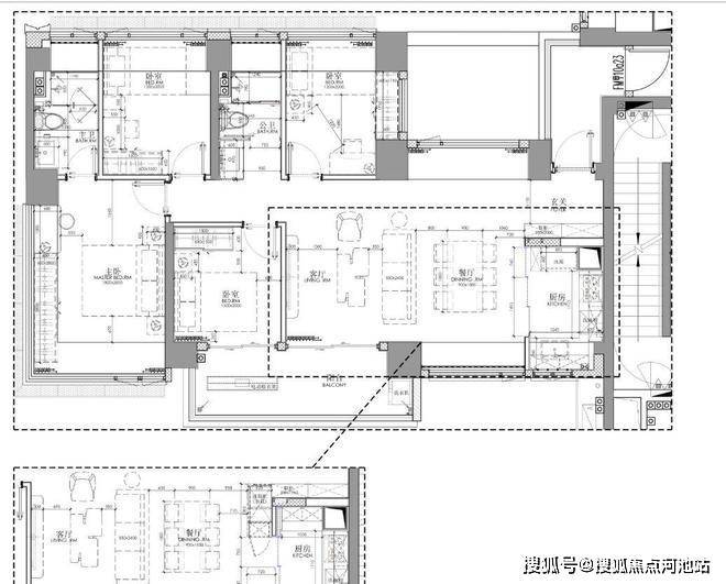 约98㎡ 3房2卫高能户型,单价区间:4.97-5.18万/㎡