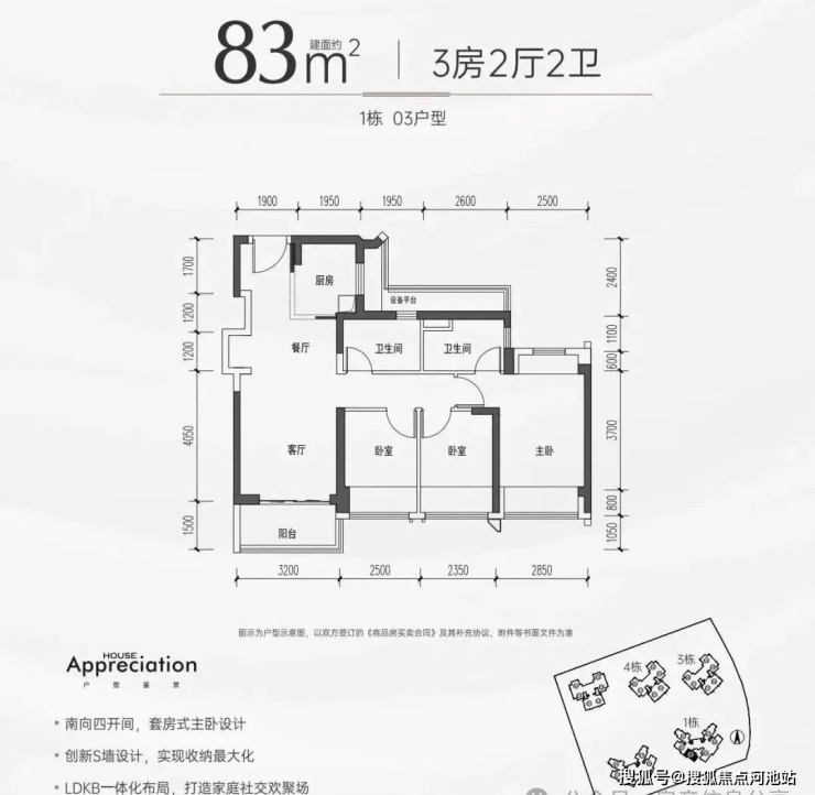 溪山禾玺御府的面积段比较丰富,包括约75-80-83-85㎡3房、94-105㎡4房,每个户型都设计有大飘窗+大阳台+设备平台。对于新规户型而言,这些空间越大说明户型赠送的越多。(飘窗、设备平台是不计入面积属于全赠送,阳台则计一半、赠送一半面积)