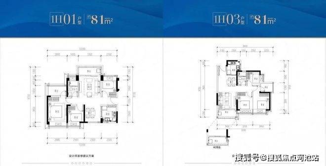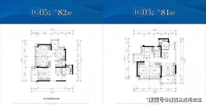 81㎡3房2卫:包含南北通透户型和经典竖厅户型。