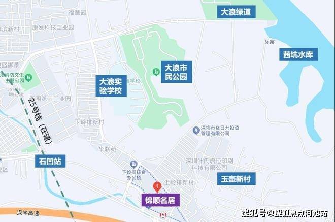 锦顺名居项目所处的区域实际上是商品房市场的新兴发展区域,大家对该片区的认知度普遍不高。该区域在龙华大浪的北部,受沈海高速的影响,与大浪、龙华等核心腹地形成明显的区域发展界线,受割裂影响较大。基建、配套、城建等综合发展水平普遍较低,工业厂房、民房、老屋村等地块功能混杂,无论从观感还是宜居角度而言,都有较大的改善空间,未来临近25号地铁线“石凹站”。