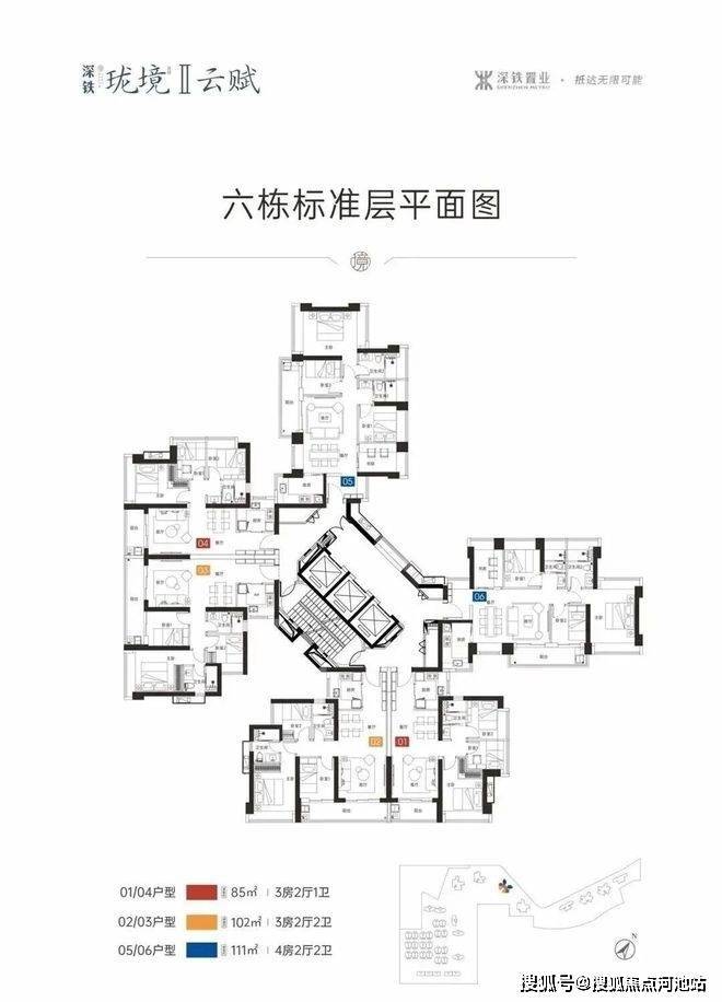 6栋为超高层,3梯6户,蝴蝶型布局。