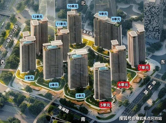 整个花园占地足够大,4万多平,比现在多数只有两三栋的豪宅舒服多了,围合式布局,1、2、3、5、6、7、12单元均是无遮挡的楼栋,东南朝向看欢乐港湾、摩天轮和前海,西南看腾讯企鹅岛和海景。