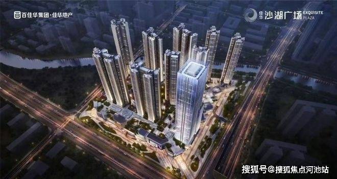 佳华沙湖广场,由佳华集团操盘,总占地面积约8.17万㎡,总建筑面积约62.2万㎡,计容建筑面积约42.6万㎡,容积率5.21,绿化率30%,共由6栋14个单元总高44-52F的住宅组成,其中1栋回迁房52F,2栋1/2单元回迁房50F,3栋1/2单元商品房50F,4栋商品房49F,5栋商品房44F,6栋1/3单元商品房46F,6栋2单元商品房47F,6栋4/5/6单元回迁房46F,6栋7单元办公+商务公寓45F,7栋规划1所幼儿园。