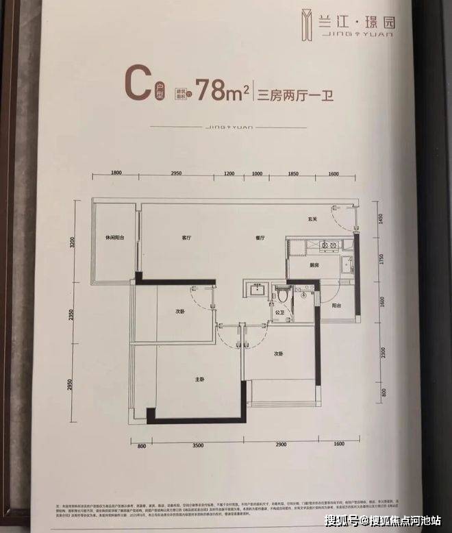 78m²的3房2厅1卫,设计的经典竖厅格局,进门入户玄关,客厅3.2米开间,LDKB一体化设计,三开间朝南,动静分区,分别做到了主卧12.43m²/次卧8.32m²/次卧6.76m²(实测面积,去掉墙体),L型厨房带1个小生活阳台2.56m²,卫生间三段式干湿分离,得房率78.8%(不含赠送),客厅阳台5.76平西南朝向,看谷仓府。套内面积61.38m²+飘窗6.56m²+阳台4.16m²=实际套内72.1m²,加上赠送面积后得房率约92%。