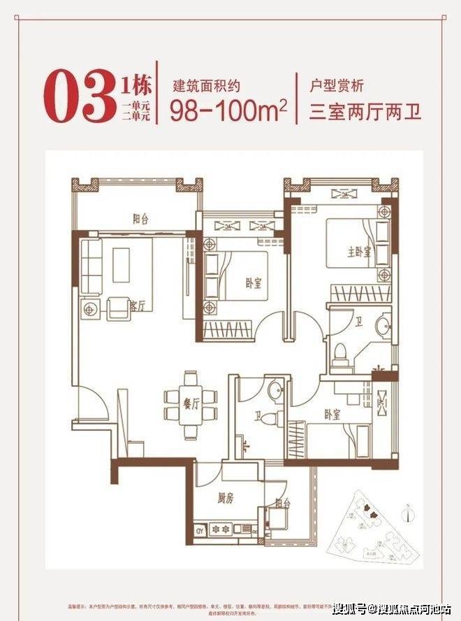 约98-100㎡三房两厅两卫,总价约403-439万,单价约3.9+万/㎡起