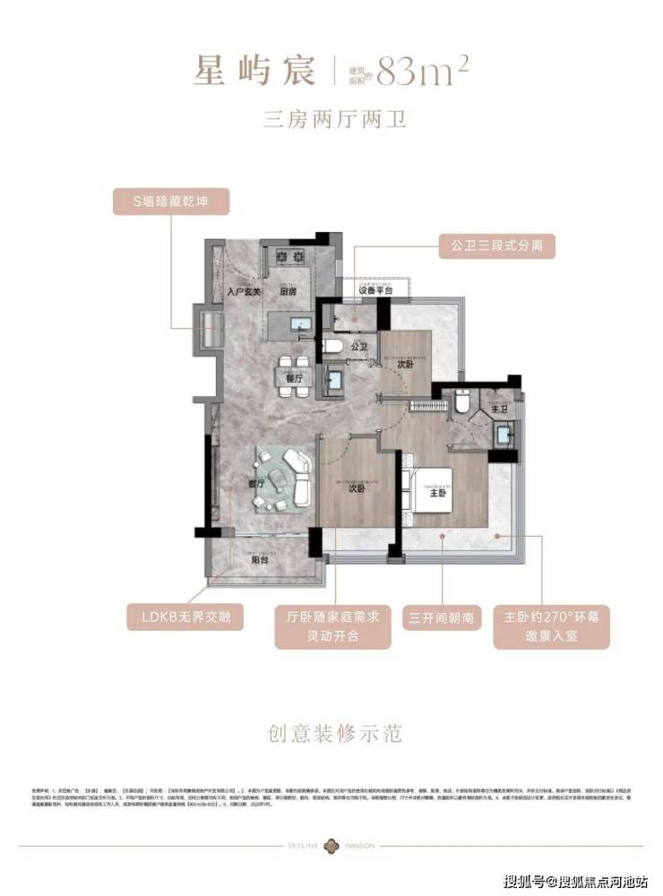 乐城三期是新规后的产品,户型使用率有所提升,加上赠送得房率100%左右,83㎡做到三房两卫,99㎡做到四房两卫,而且整个项目都是非超高层,总层高29-32层,均不超100米的建筑。