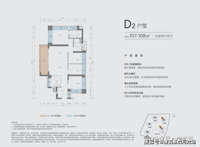 D-2户型 | 建面约107-108㎡四室两厅两卫