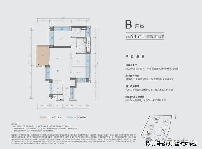 C-1户型 | 建面约93-95㎡三室两厅两卫
