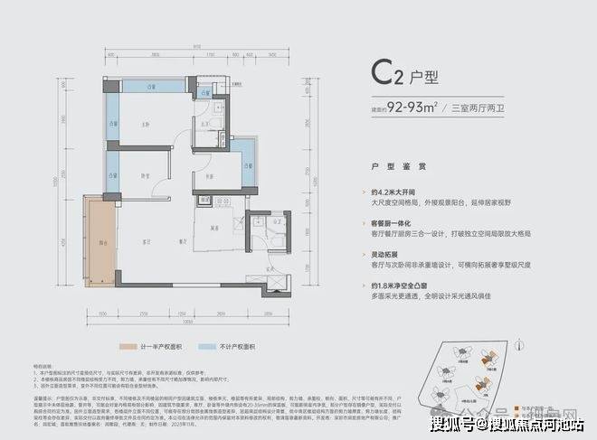 C-2户型 | 建面约92-93㎡三室两厅两卫