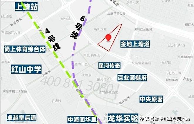 根据地图示意,该宗地位于金地上塘道2期西侧,周边还有中城宴华府、星河传奇、尚誉红山里等次新小区,地块北侧是隔圳新村。