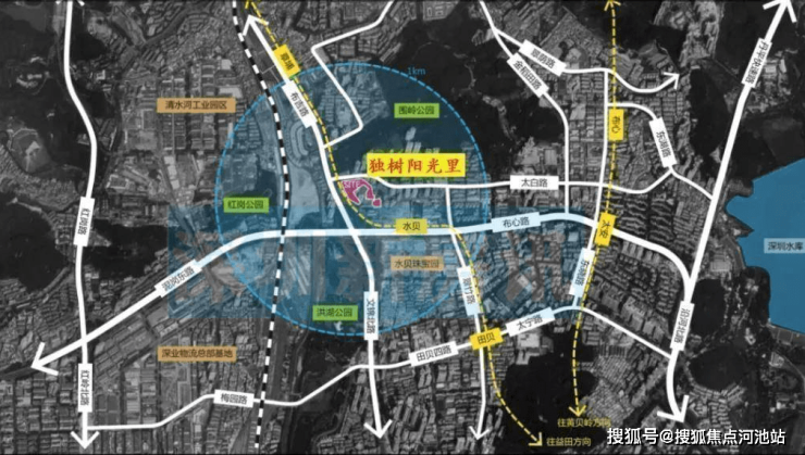 独树阳光里位于东晓街道布心片区,北侧临围岭公园,南侧临水贝国际珠宝交易广场。