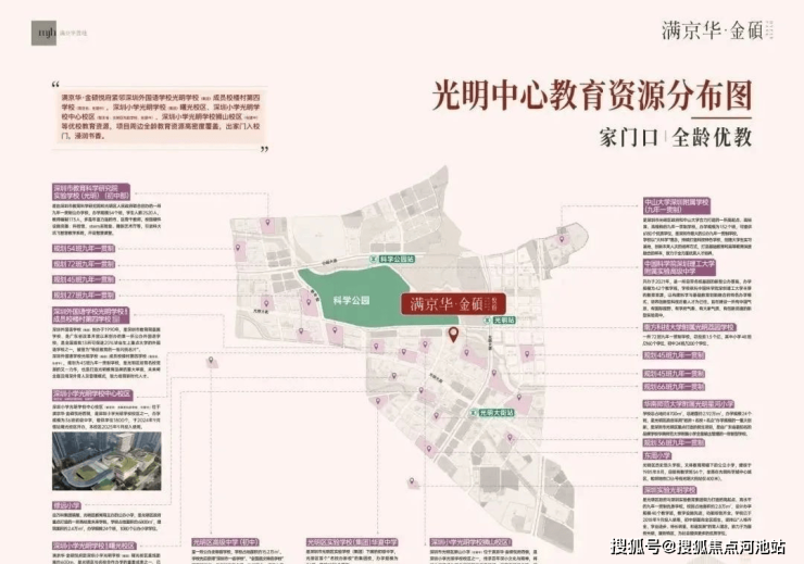 满京华·金硕项目直面占地约208万㎡的科学公园(在建中),近享深圳国际美术馆(暂定名、在建中)、深圳科学技术馆、科学城体育中心(在建中)、会议中心(规划中)等市政级文体配套;还坐拥狮山公园(规划中)、约9.4万㎡的东周文化公园,约10万㎡的开明公园,约56万㎡的新城公园等丰富绿色生态资源。