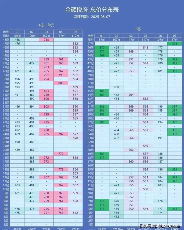 第二次加推:7月12日加推1栋2单元、2栋2单元,47-48层,3T6户,可售241套,户型为87㎡3房2厅2卫,107㎡4房2厅2卫,117㎡4房2厅2卫,157㎡5房2厅2卫。