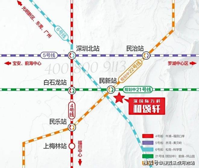地铁-地铁线路密集: 1站深圳北,2站福田。4/5/6/21(规划中)/22(在建中)号线,5条地铁环绕;项目距离4号线白石龙站直线距离约600m,便捷通达;