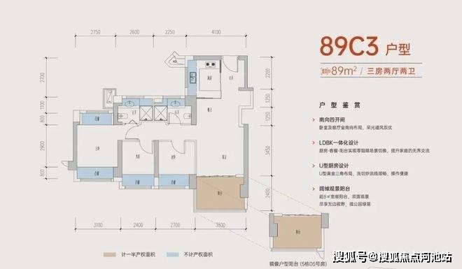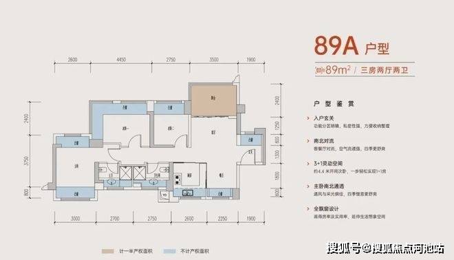 89㎡的3房2卫,折后总价270-305万/套,折后单价2.98-3.41万/㎡。
