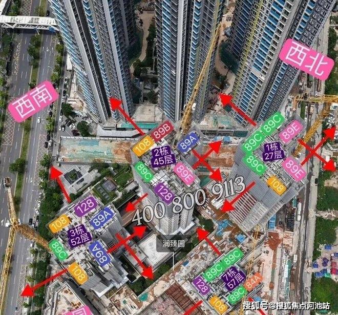 润宏城户型朝向航拍示意图
