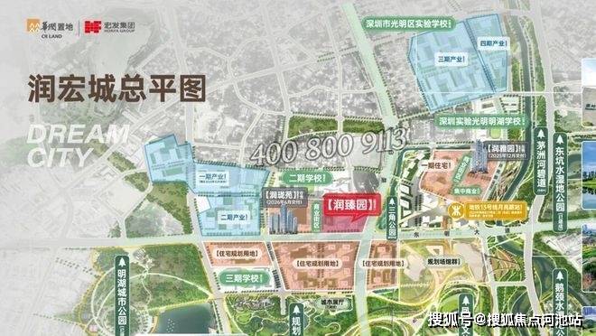 华润润宏城,位于光明区凤凰街道塘尾社区,总占地面积约195万㎡ ,总建筑面积约382万㎡,住宅面积高达172.44万㎡,分多期多地块开发,其中一期就分4个地块开发,前期入市的是润雅园已经基本售罄,还剩少量4房在售,这次润臻园就是1期其中一个地块,后面还有二期三期,另外产业配套也分4期开发打造,还规划有3所九年制学校、2所18班幼儿园,3所12班幼儿园,3所9班幼儿园。
