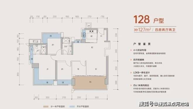 128㎡的4房2厅2卫,折后总价480-517万/套,折后单价3.75-4.02万/㎡。