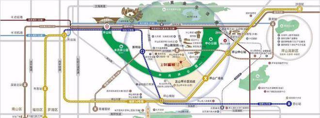 500米范围内坪山区府,坪山中心公园,坪山图书馆,美术馆,展览馆,大剧院等均坐落于此,14号地铁线“坪山广场站”距离约400米,16号地铁线“新和站”距离约700米,坪山高铁站,深大城际“坪山站”距离约1.6公里