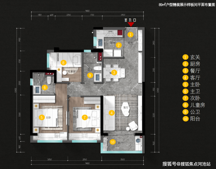 【户型】约89㎡三房两厅两卫