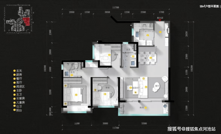 【户型】约99㎡三+一房两厅两卫