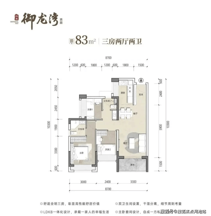 户型实用,得房率高:项目户型设计注重空间利用率,部分户型加上赠送面积后,得房率非常可观。例如,83㎡户型可做标准三房两卫,得房率约90%;95㎡户型甚至可设计为四房两卫,得房率最高可达93%。这种“小面积、多房间”的设计,对于预算有限但又需要更多功能空间的刚需和刚改家庭来说,性价比很高。