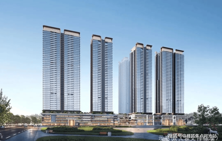 王座式塔冠,温润弧线设计,以及大面积通透LOW-E玻璃幕墙,辅以香槟金、内敛灰、雅致咖的品质铝板,匠呈恒久典雅立面。