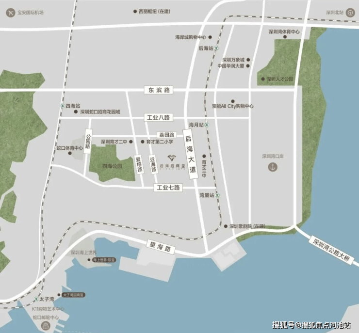 2、商业配套:后海招商玺周边3公里内商业配套极为丰富,最近的大型商场为宝能太古城,2公里范围内覆盖深圳湾万象城、海岸城、天利名城、来福士广场、蛇口招商花园城等多个大型购物中心,3公里有K11购物艺术中心。