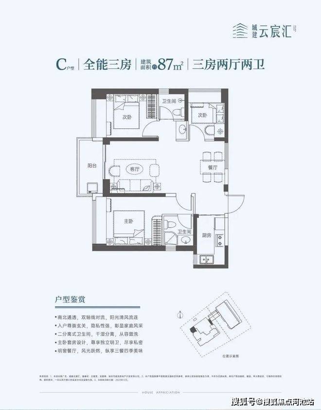 87㎡的3房2厅2卫,折后单价4.19-4.62万/㎡。