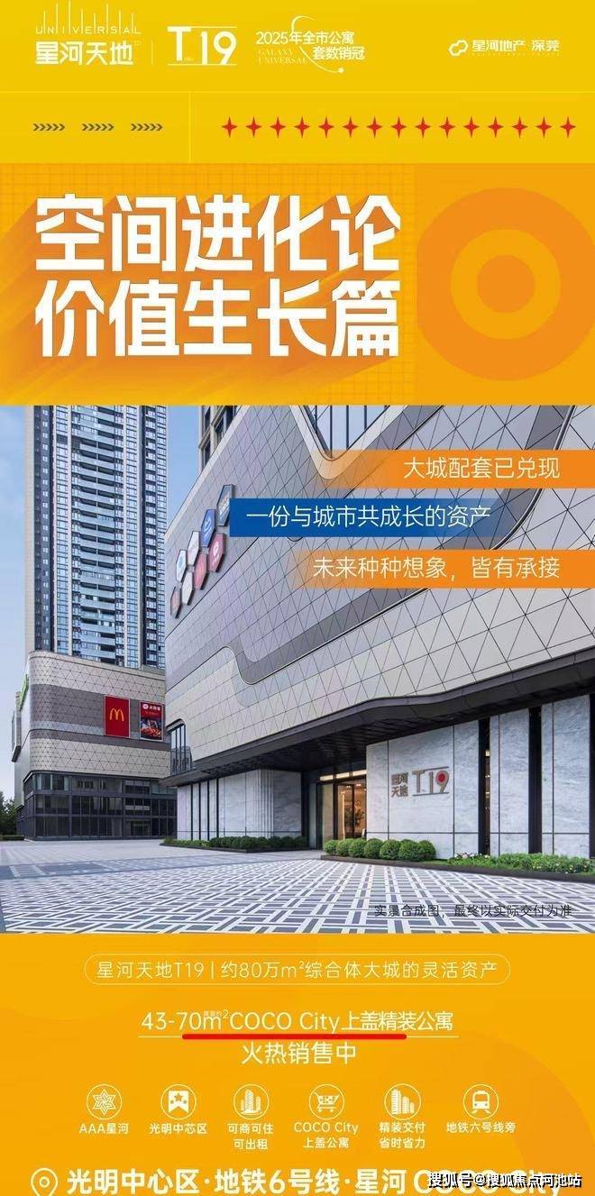 本项目推广名为“星河天地T19寓",官方电话:400 811 3080 本资料为要约邀请,不作为要约或承诺。以上所发布的关于楼盘相关图文信息仅供您买房前参考,以上所有关于本楼盘的图文资料及说明请以最终以项目批文及双方在楼盘营销中心现场签署的买卖最终合同为准;