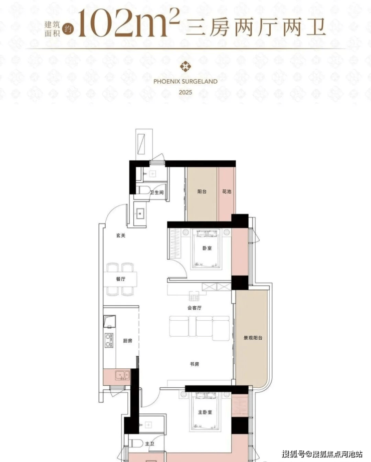 102㎡3房2卫: