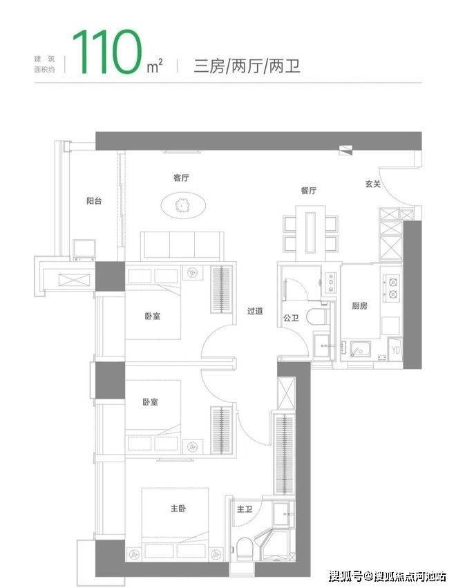 瞰景三房,飘窗、阳台拉开居住视野,主卧私享功能产备