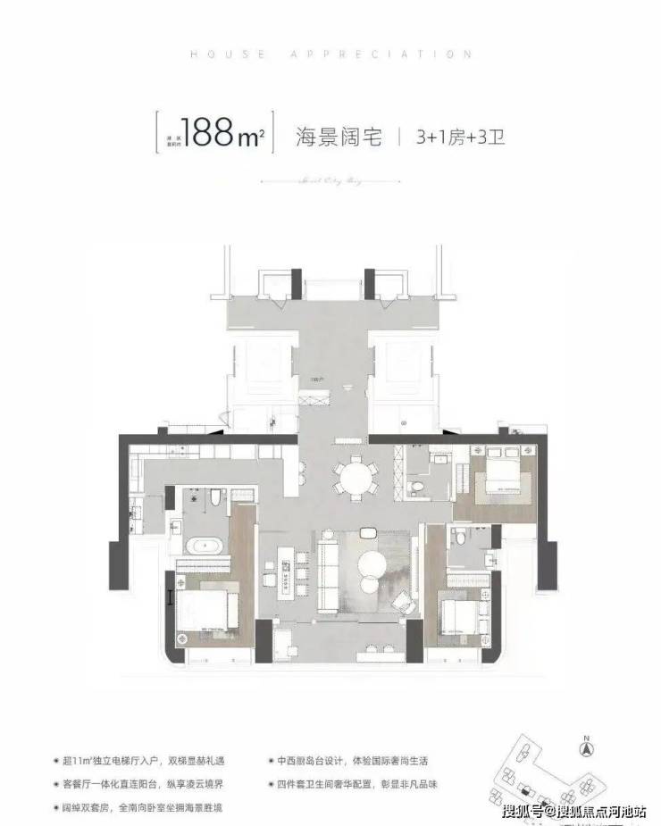 建面约111-112㎡纯正3房2卫:项目首次推出产品!东南朝向看城市景观,主卧带衣帽间+三分离卫浴,动静分区,总价直接砍到1023万起。
