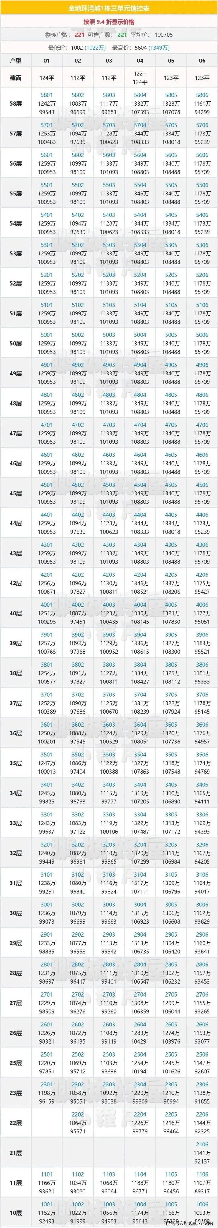 建面约111-125㎡户型,T6栋,4梯6户,总层高58层,精装交付。