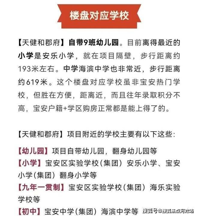 此外,天健和郡府项目步行实际距离约550米便是深圳市宝安中学集团海滨中学(西北门),步行实际距离约740米也可以到达深圳市宝安区海乐实验学校,约950米到深圳市新安中学(集团)初中部,上初中的孩子们这个时候已经很独立了,不到1公里的距离,完全可以自行搞定。