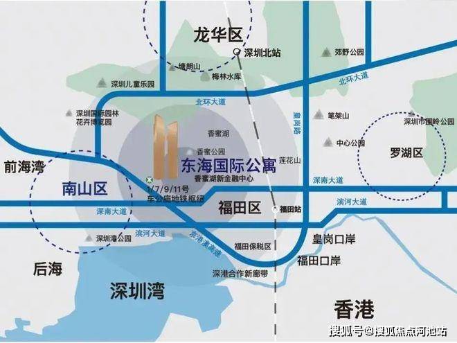 东海国际交通:香蜜湖片区内,途经有1号、2/8号、9号、11号等4条地铁线,覆盖香蜜湖、香蜜、香梅北、香梅等4个站点,前往各区均较方便。另据相关规划显示,未来14号线、20号线也有望经过香蜜湖。楼下深南大道对接京港澳高速G4福田出入口,约20分钟可直达深圳机场、畅达深圳湾等各大口岸;福田高铁站14分钟快速通勤香港。