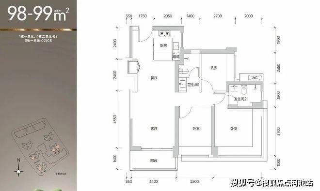 98㎡的3房2卫,折后总价346-390万/套,折后单价3.48-3.97万/㎡。