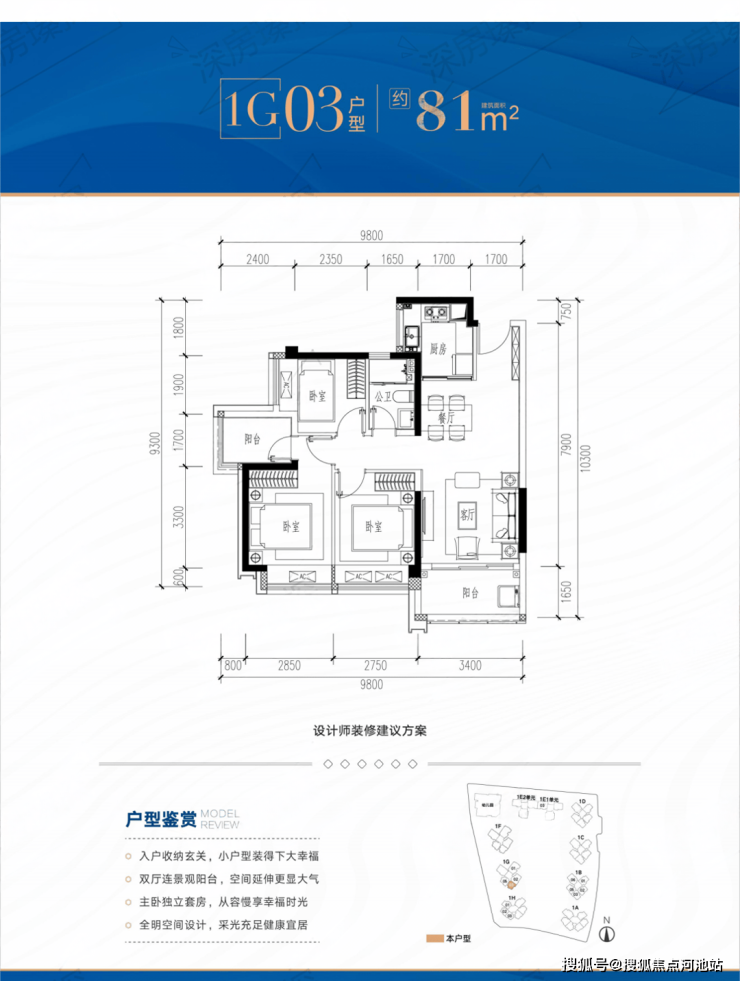 本次推售1栋共874套房源,户型包括81㎡3+1房、89-109㎡4房2卫和135m²5房2卫。