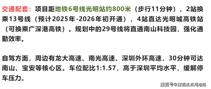 科学公园片区还规划了科技创新文化集群,未来将联动区域内的产业园区(如凤凰城科技园)形成产学研一体化生态。此外,光明城高铁站4站可达,便捷对接南山科技园、留仙洞总部基地等产业高地,进一步强化产城融合优势。