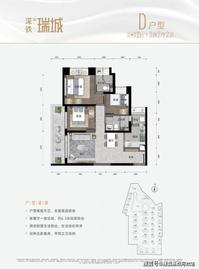 【户型面积】建面约96-100㎡舒居大三房