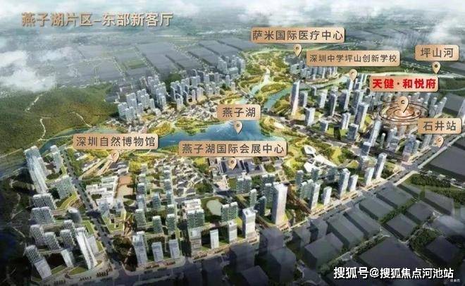 2023年深圳两会提及加快建设9大区域,包括燕子湖新区,坪山十四五提出“1+7+N”重点片区格局,1为燕子湖,市级区级双重背书,高标准打造定位东部城市新客厅。