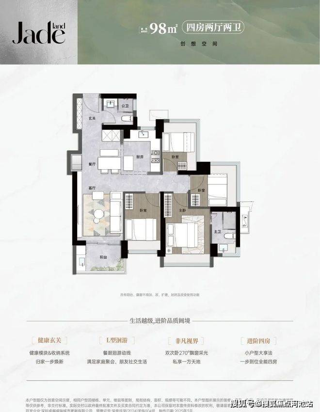 【98㎡4房2卫】板块内目前「唯一」面积段区间做到四房的产品‼空间刺客‼