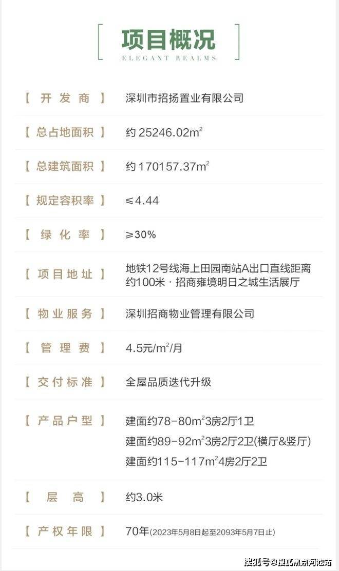 最新消息:深圳宝安沙井新楼盘——招商会展湾雍境名邸于2025年4月30日取证,首推1栋3单元,共有198套房源,面积有80的3房1卫,91平的3房2卫,本栋全是刚需3房 ,备案均价4.74万,备案单价4.28-5.33万/㎡,总价343-491万/套,目前98折优惠,折后均价4.64万/㎡。