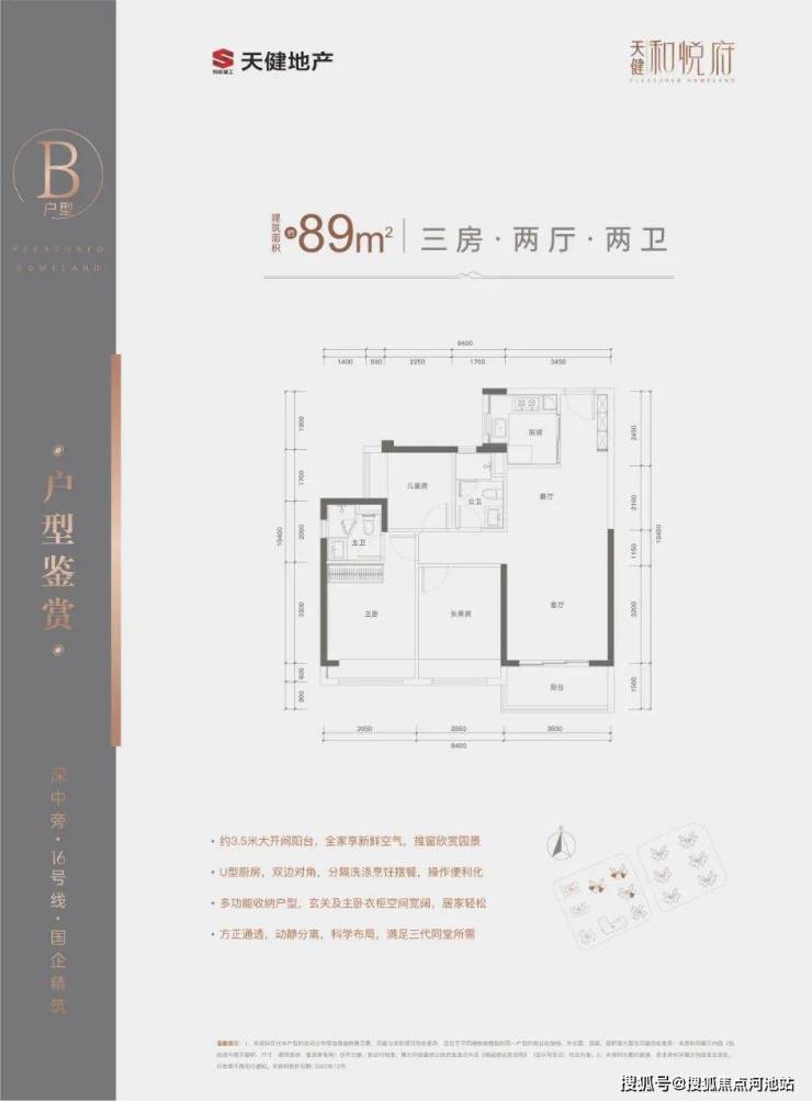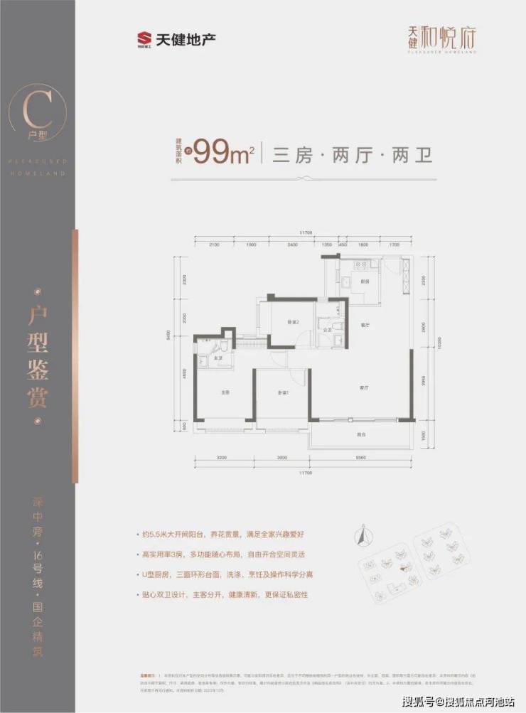 天健和悦府项目主推建面约75㎡通透三房两厅一卫、89㎡三房两厅两卫、99㎡三房两厅两卫住宅,最低首付仅需23万,即可实现最低门槛上车深中旁、地铁口装修三房,一步到位!送高配精装修!