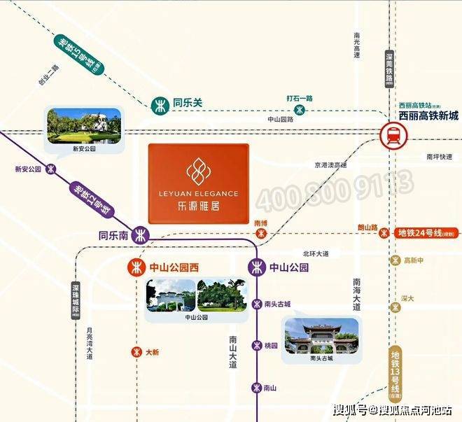 3地铁12号线同乐南站(直线约500m),1站中山公园,2站到西丽高铁站(在建中),4站到科技园,5站到前海,近享深圳首条地铁环线15号线同乐关站(建设中),24号线(规划中)等多轨交汇,高效出行