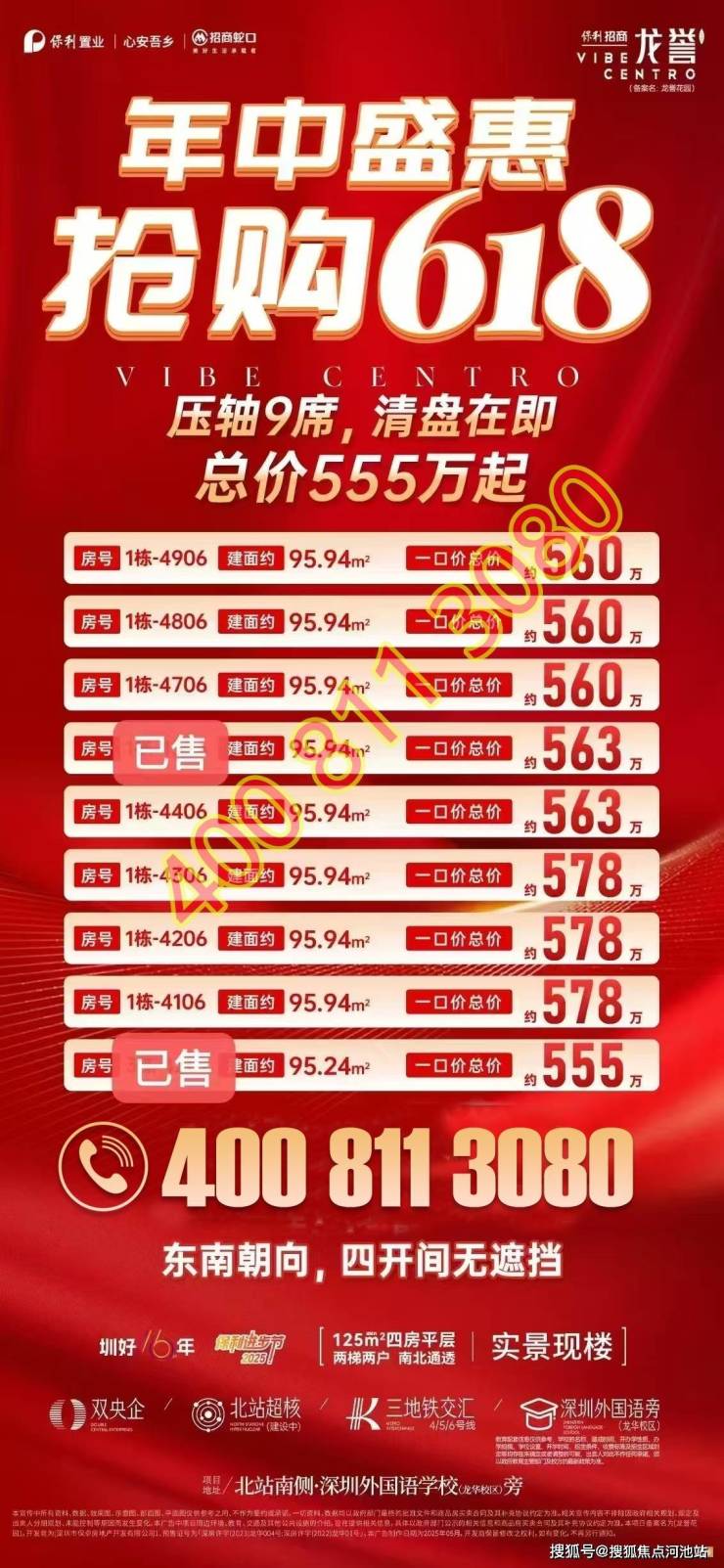 最新消息:2025年618年终盛惠活动发布了,总价555万起!如需了解本楼盘更多详情,欢迎来电咨询深圳龙华保利招商·龙誉开发商售楼处免费400咨询/预约电话:400-811-3080(已认证)中介请勿扰,因近期参观的人员太多,本项目营销中心暂不接受临时到访,为不耽误您的行程,过来楼盘现场参观样板房请务必记得提前来电预约,预约看房的话最终房价还能更加优惠,最终价格包您满意!